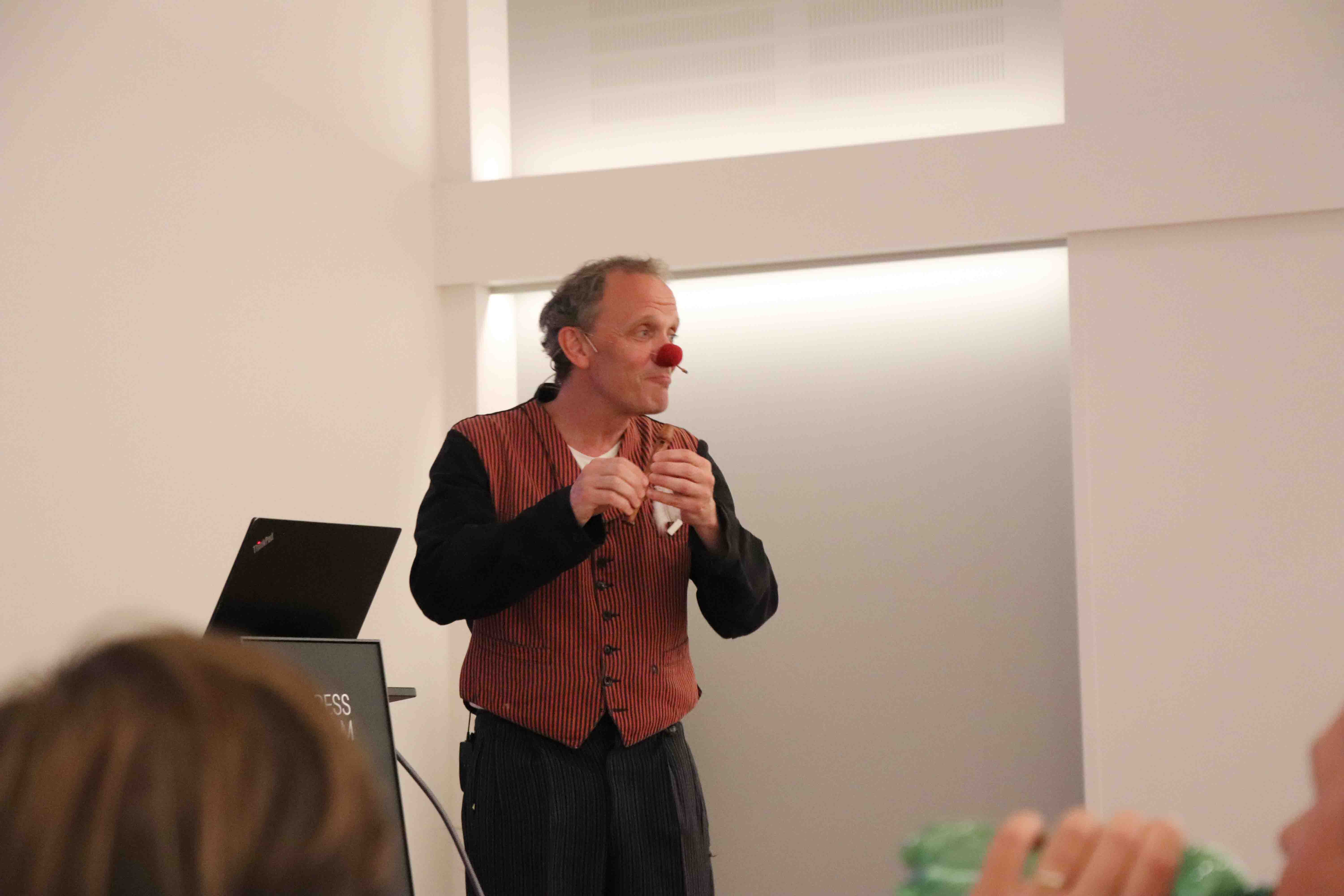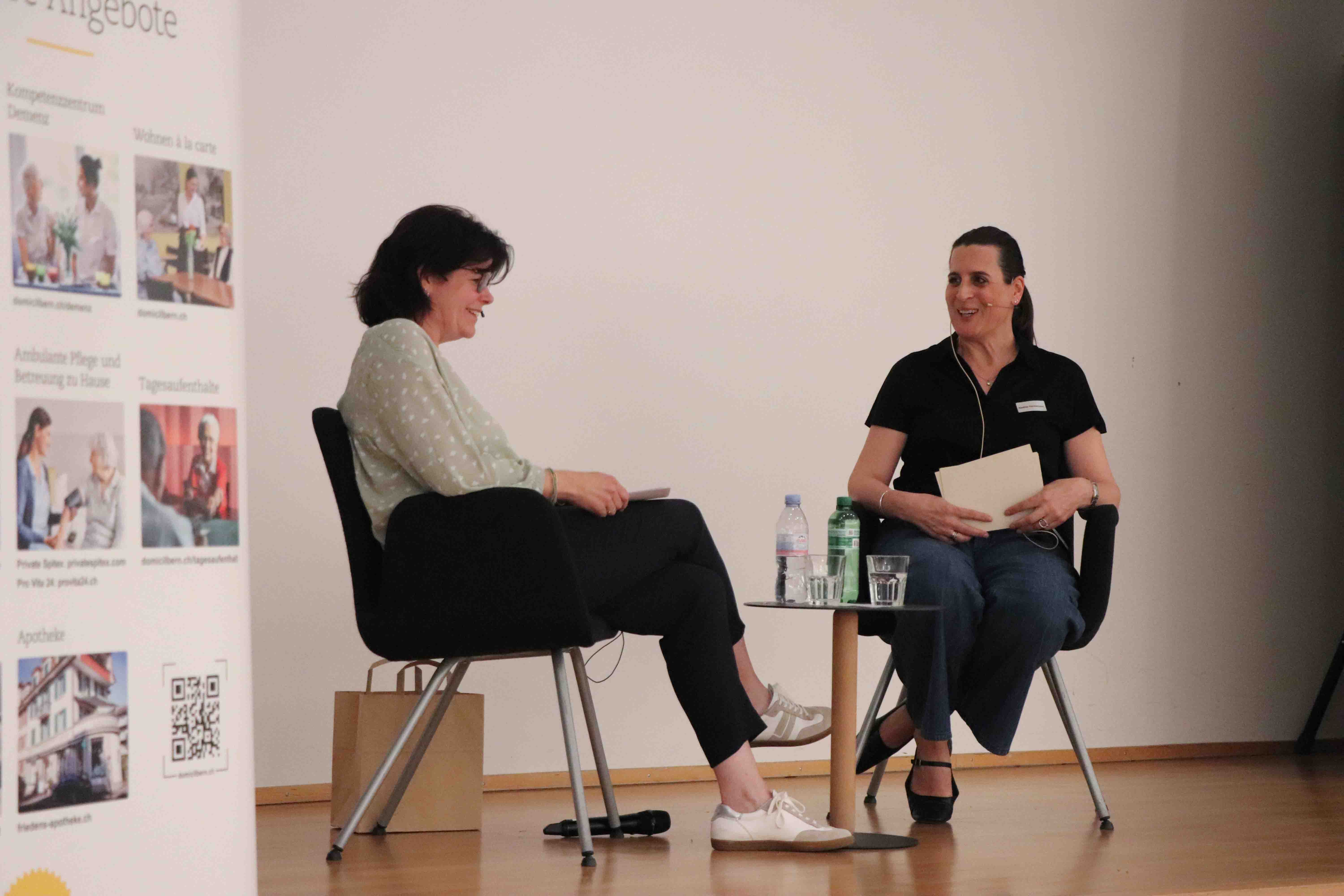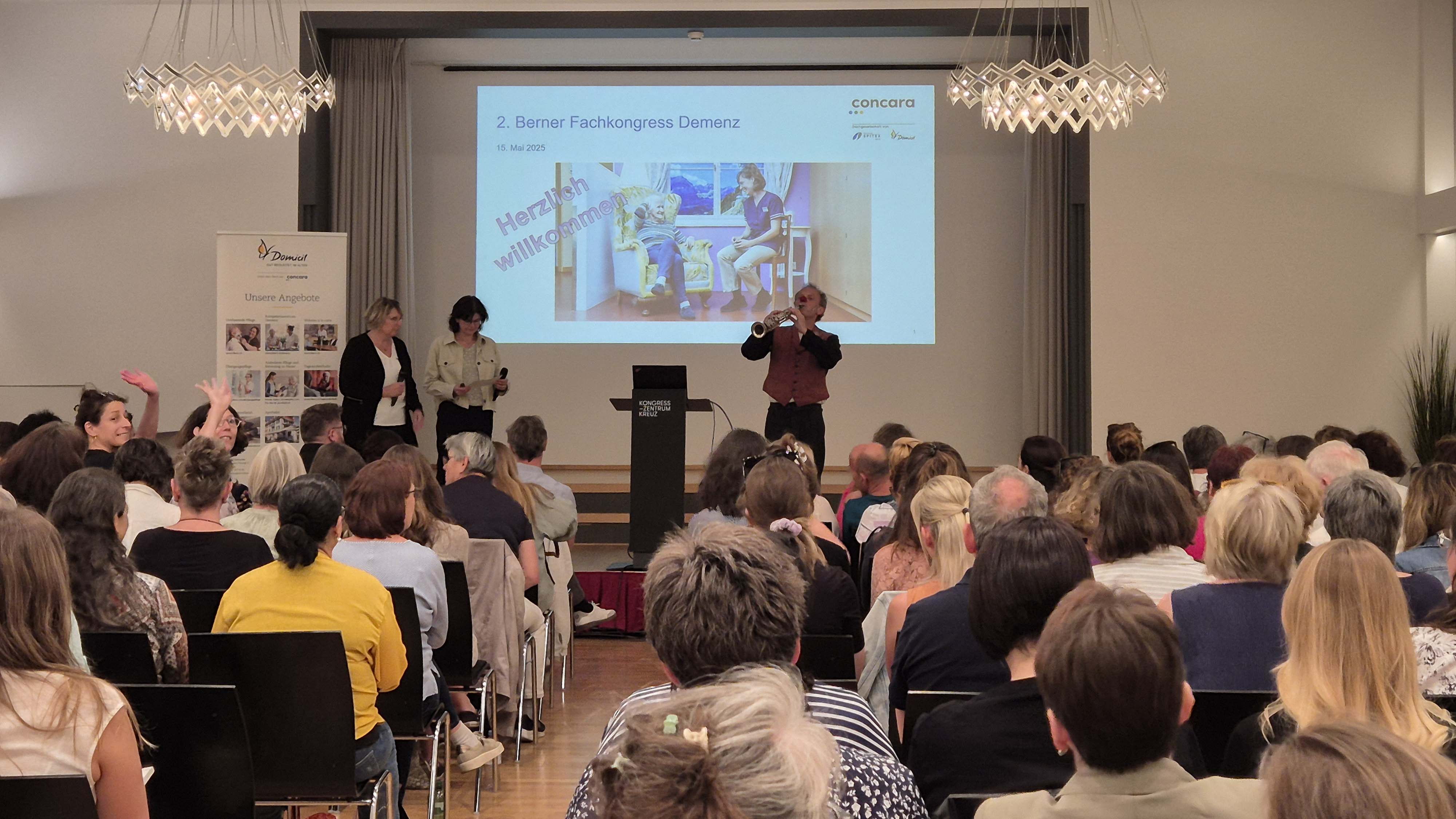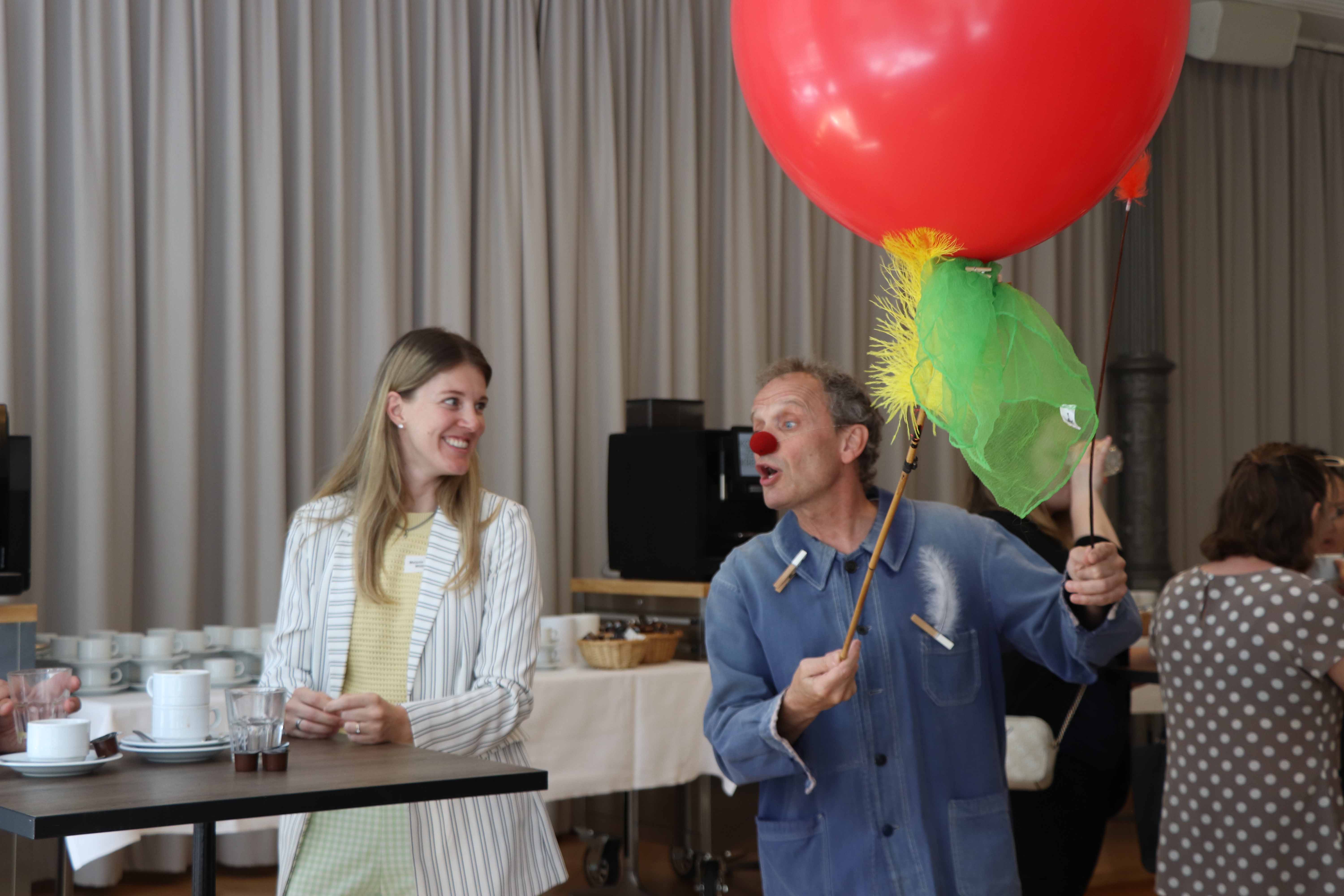 Ein Interview mit einer Angehörigen eines Menschen mit Demenz schloss den Nachmittag berührend ab. Begleitet wurde der Event mit feinem Humor und Tiefsinn vom «Begegnungsclown» Marcel Briand.