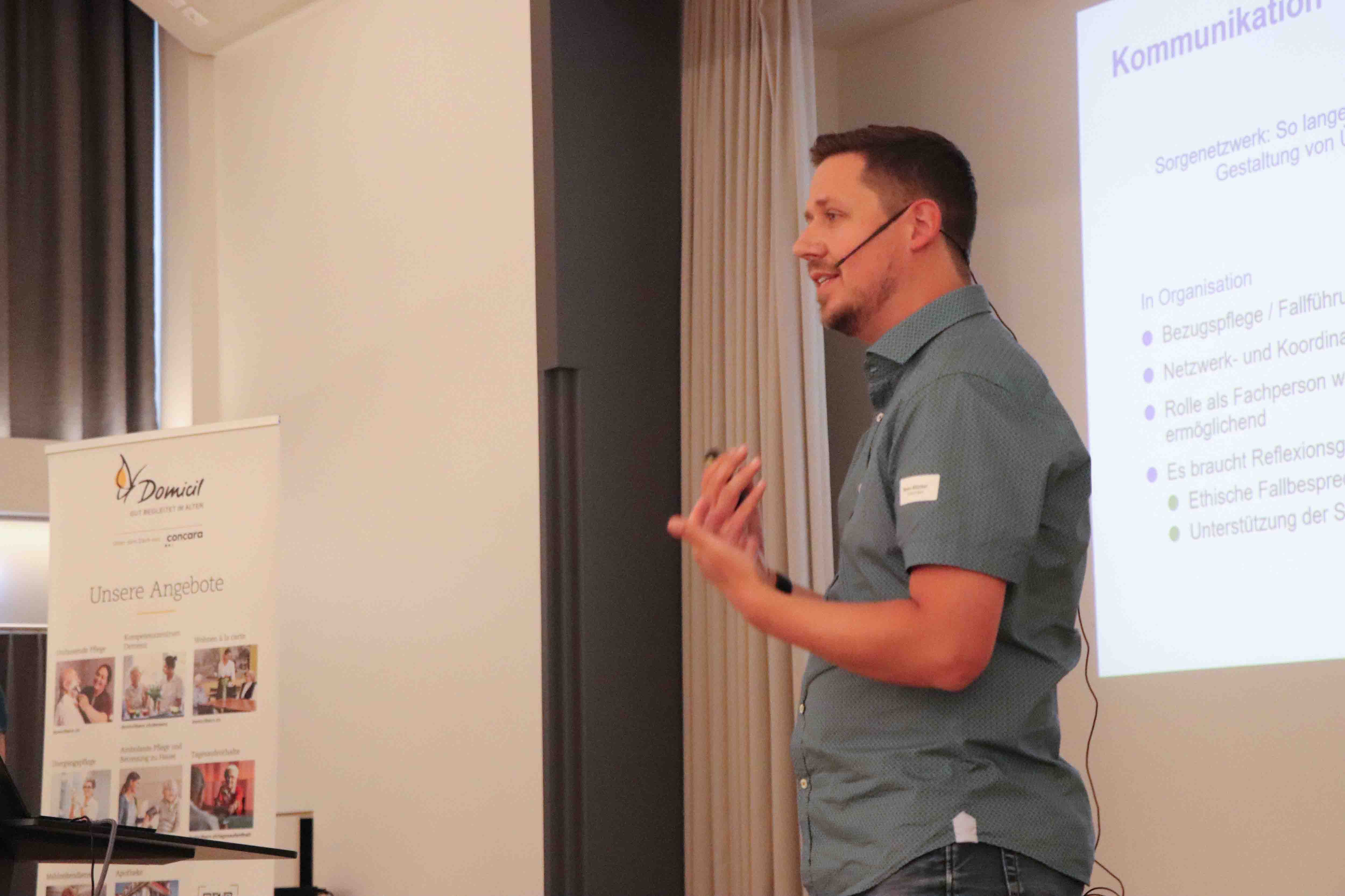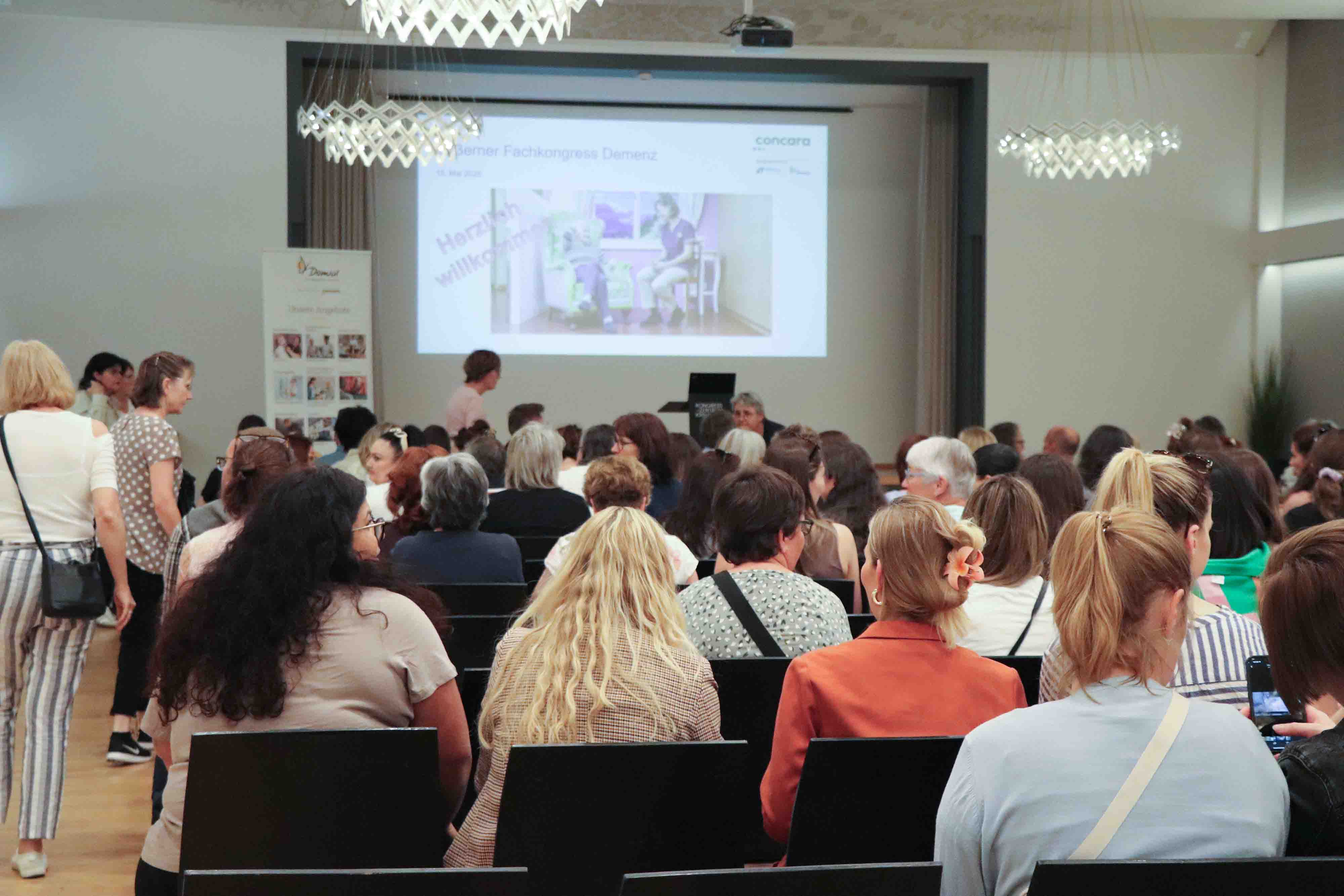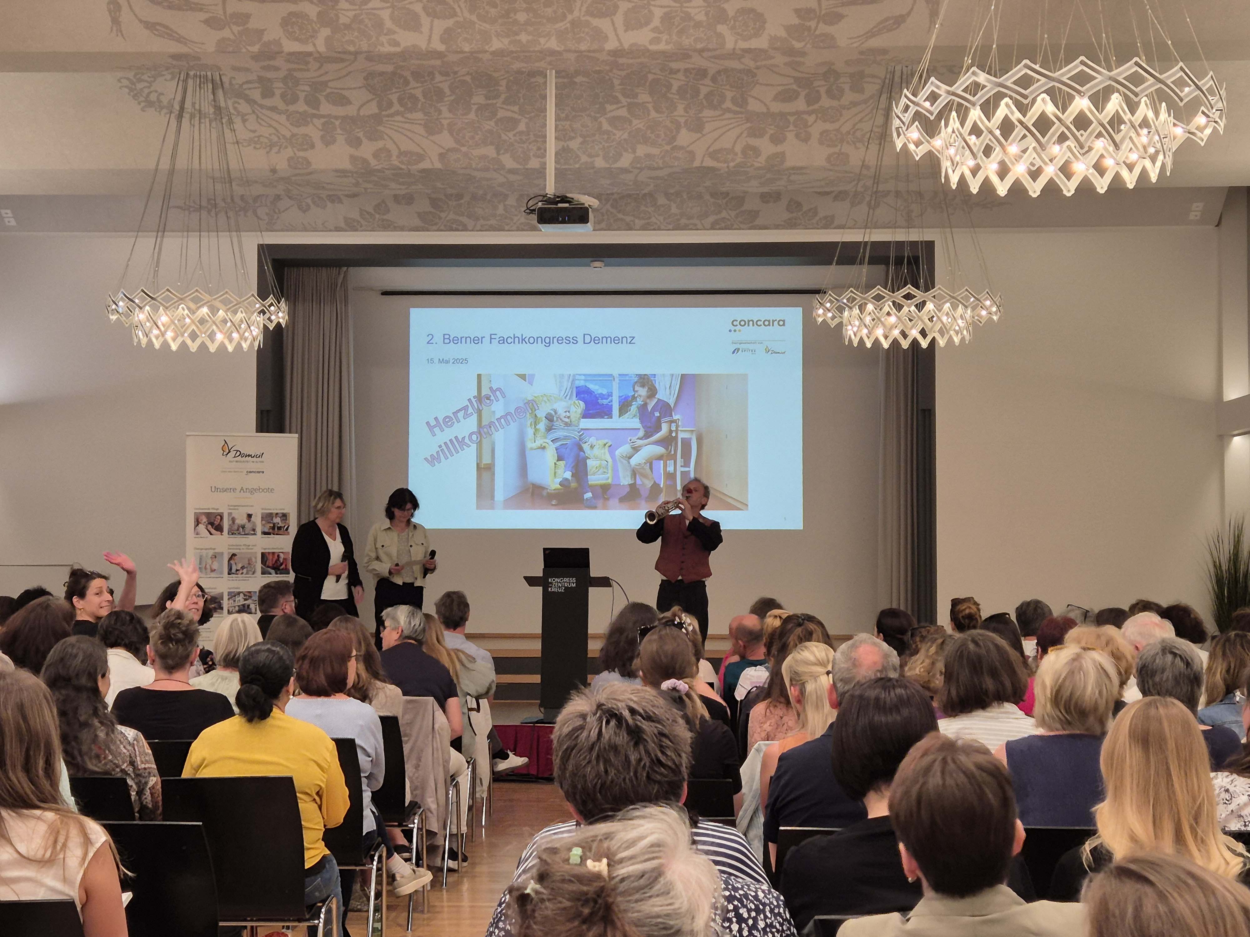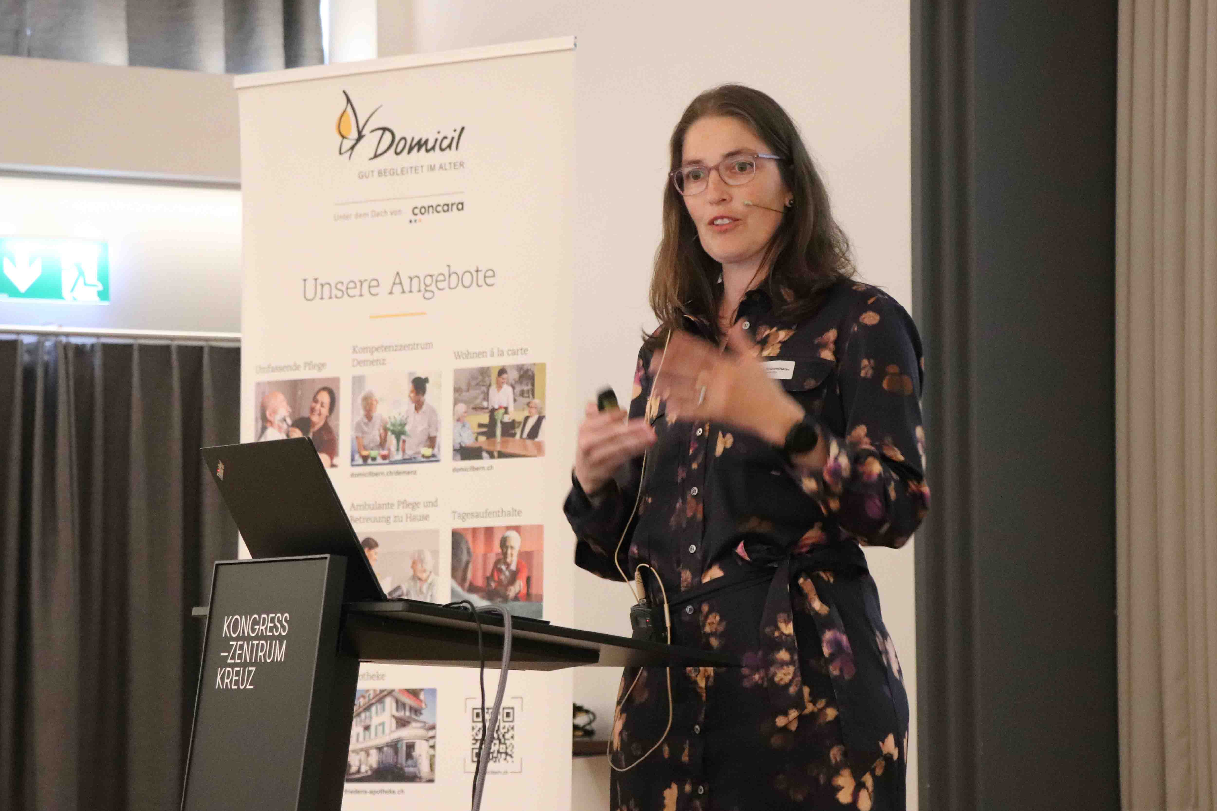 Am 15. Mai fanden im Kongresszentrum Kreuz in Bern rund 120 Fachleute aus der ganzen Deutschschweiz zusammen. Der 2. Berner Fachkongress Demenz stand unter dem Motto «Pflege und Betreuung zwischen Selbstbestimmung und Fürsorge». Ethikerin Daniela Ritzenthaler sowie Expertinnen von Domicil und Spitex Bern (Sandra Sermier, Remo Stücker, Claudius Domeyer, Christoph Berger) sprachen über ethische Fragen, diskutierten Fälle aus der Praxis und präsentieren für Pflegefachleute bewährte Massnahmen und Methoden in der Pflege und Betreuung, stets mit dem Ziel vor Augen, Betroffenen und Angehörigen ein Optimum an Lebensqualität zu bieten.