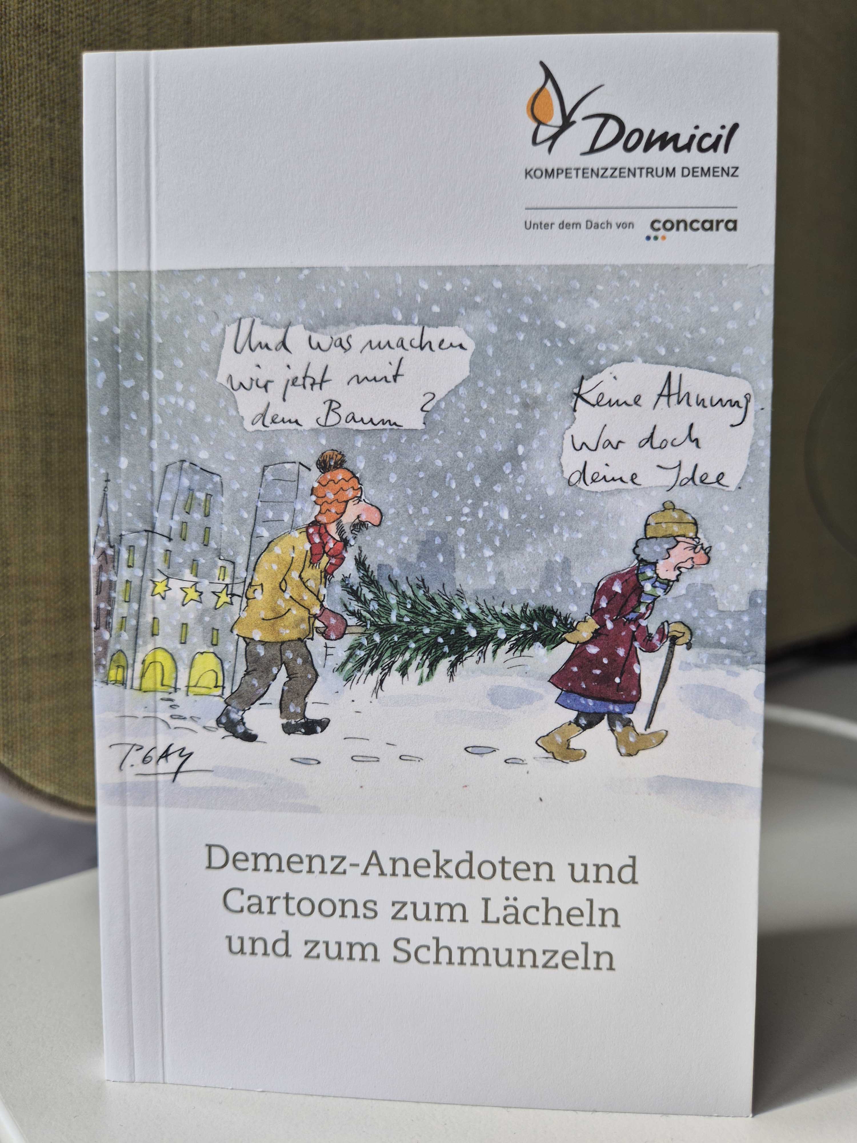 Zum Abschluss erhielten alle Teilnehmenden erhielten die Neuauflage des Büchleins “Demenz-Anekdoten und Cartoons zum Lächeln und Schmunzeln” geschenkt.